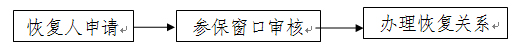 一、事项名称及编码:恢复养老、医疗、失业保险关系,编码:02 二、设立依据:依据《社会保险法》第七十四条“社会保险经办机构应当及时为用人单位建立档案,完整准确记录参加社会保险的人员、缴费等社会保险数据”;《河南省企业职工基本养老保险经办业务规程》第四章第四节“中断和恢复缴费账户处理” 设立本事项。 三、申请条件:本标准适用于在市本级企业养老保险经办机构参保登记的各类用人单位及其参保职工、城镇个体工商户和灵活就业人员的养老保险关系恢复管理。 四、受理地点:市行政服务中心一楼 五、窗口职责:负责本审批事项的政策咨询;负责行政相对人的资格及其报送资料的受理、审核、办理。 六、工作程序(工作流程图): 七、需提供的申报材料 1、企业参保职工填写《建立(恢复)职工养老保险关系申报表》一式三份,并加盖单位公章,同时提供本人身份证原件及复印件、用人单位与参保职工个人签订的劳动合同复印件和其它资料证明。 2、个体工商户及灵活就业人员提供本人身份证原件及复印件,填写《建立(恢复)职工养老保险关系申报表》 八、法定时限及依据: 原承诺时限:即办 现承诺时限:即办 九、收费标准及依据:不收费 十、联系电话: 3325921 监督电话: 3328401 十一、相关下载 |